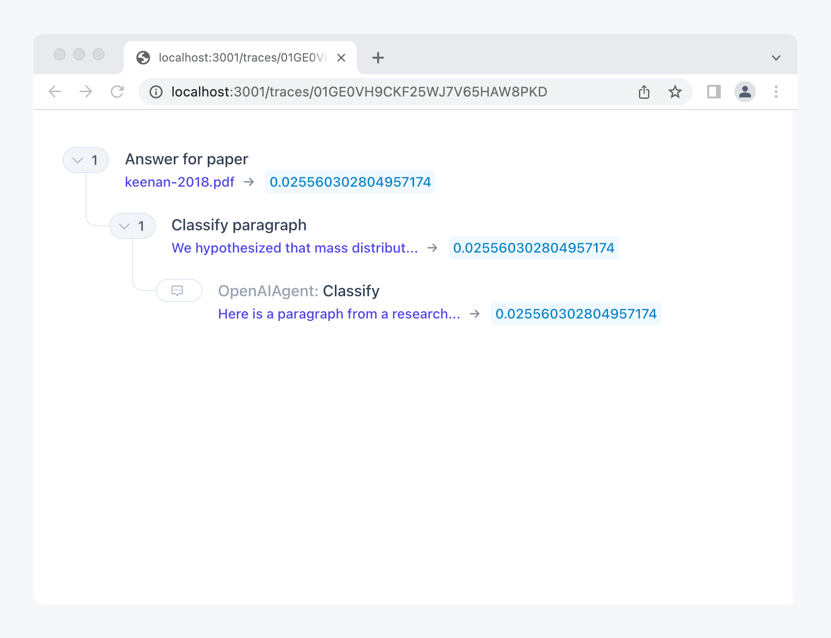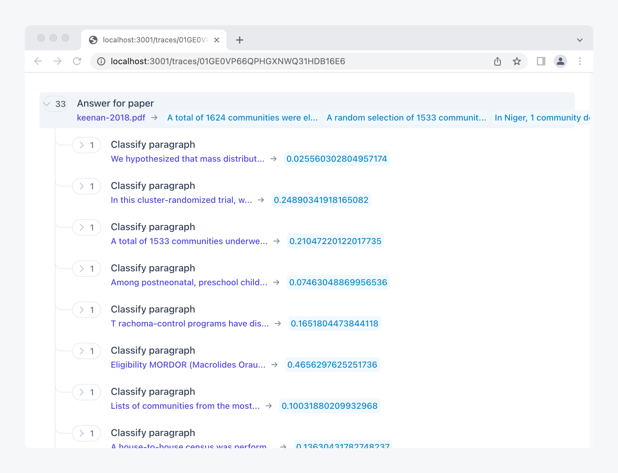 You will now see a list of probabilities, one for each paragraph: